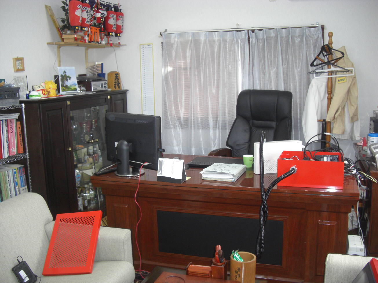 | ・・・1階の作業工房で制御試作をしています。奥には事務所と中国茶器で飾った応接室です。 | |||||